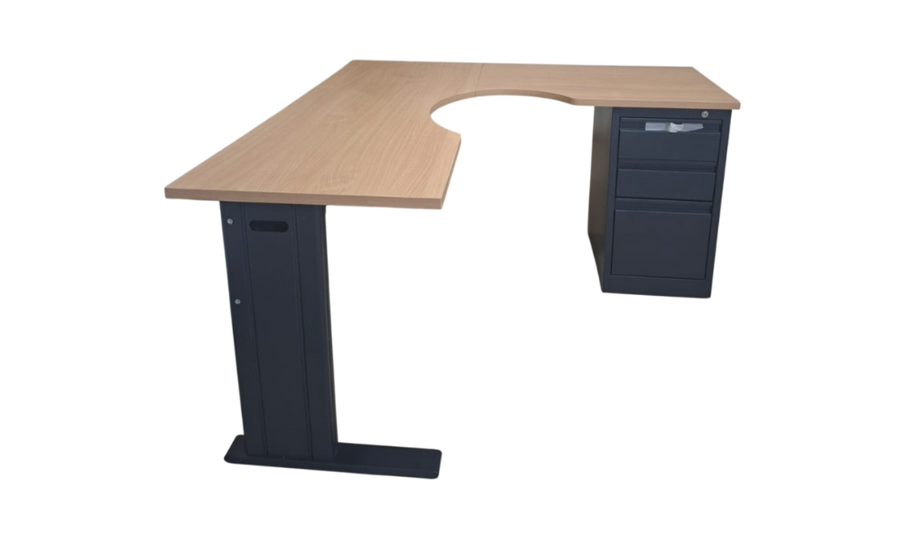 - Incluye pedestal fijo de 3 gavetas; 2 papeleras y una tipo archivo.
