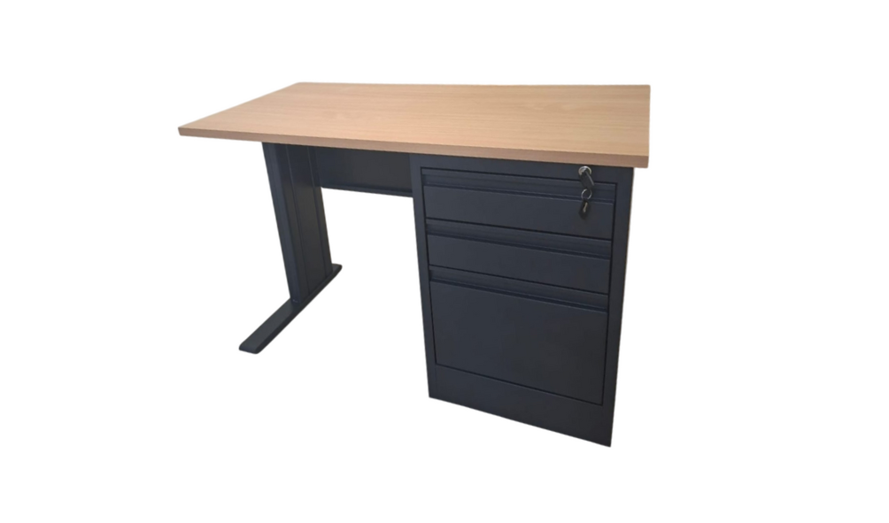 - Pedestal fijo de 3 gavetas, 2 papeleras y una tipo archivo con llave cierre central.