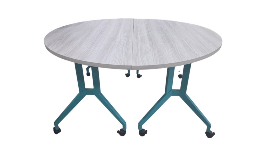 - Mesa modular de 3 piezas; 2 semicírculos de 0.60 de diametro y una pieza de 1.20 largo x 0.60 fondo
