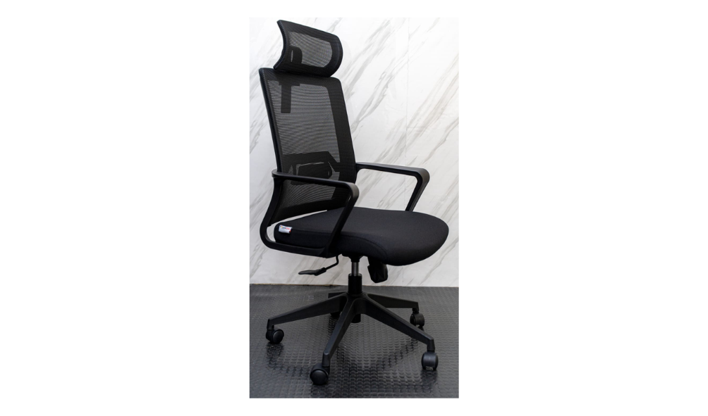 - Respaldo alto en malla y asiento en tela color negro.