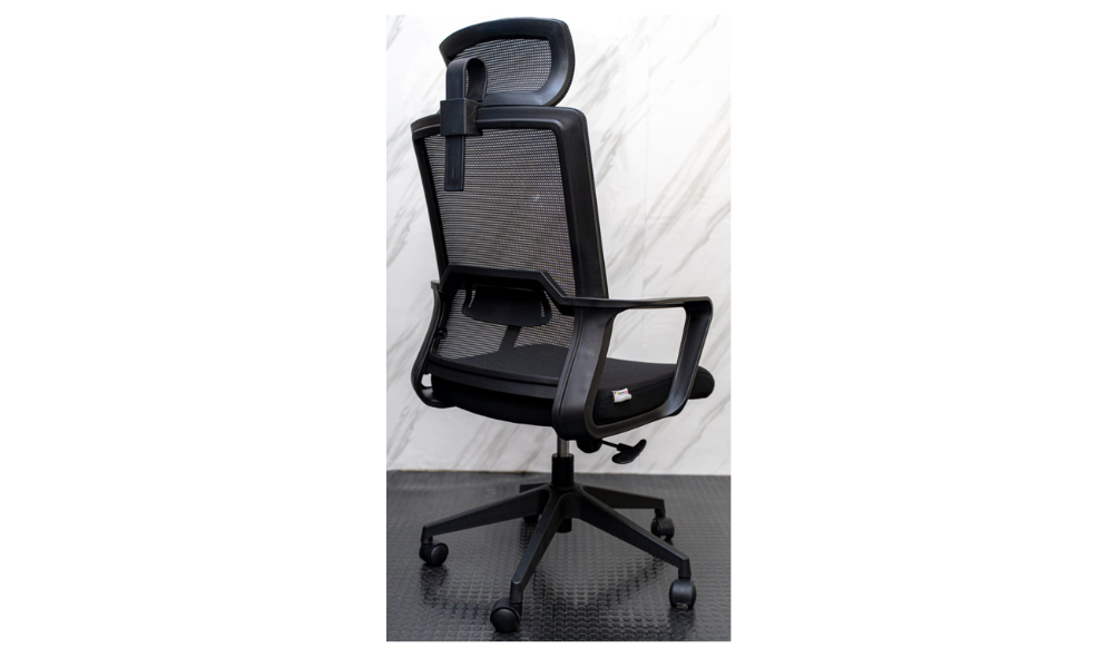 - Respaldo en malla medio y asiento en tela color negro.