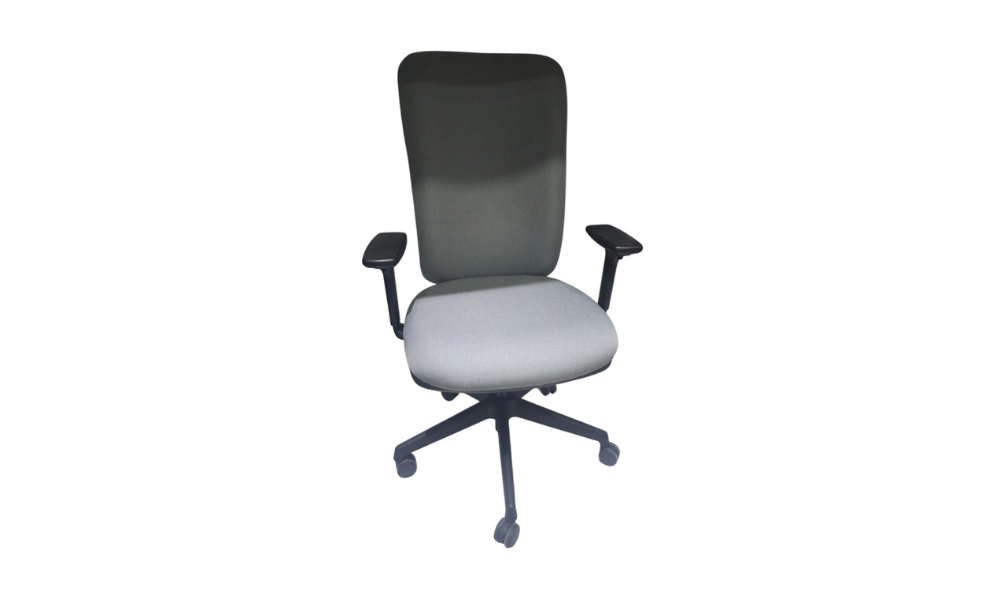 - Asiento y respaldo en tela gris de alta resistencia.