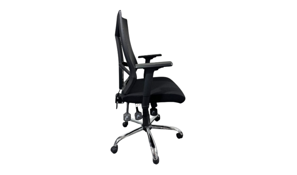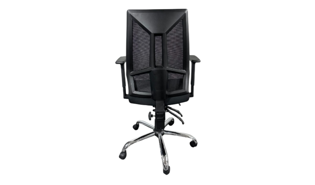 - Respaldo en malla y asiento en tela de alta resistencia en color negro.