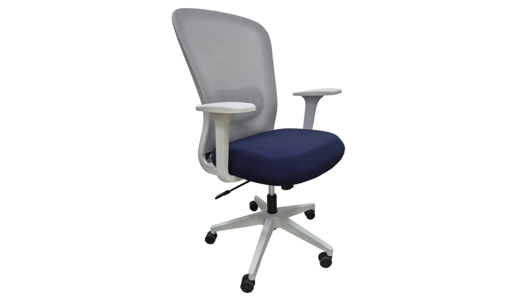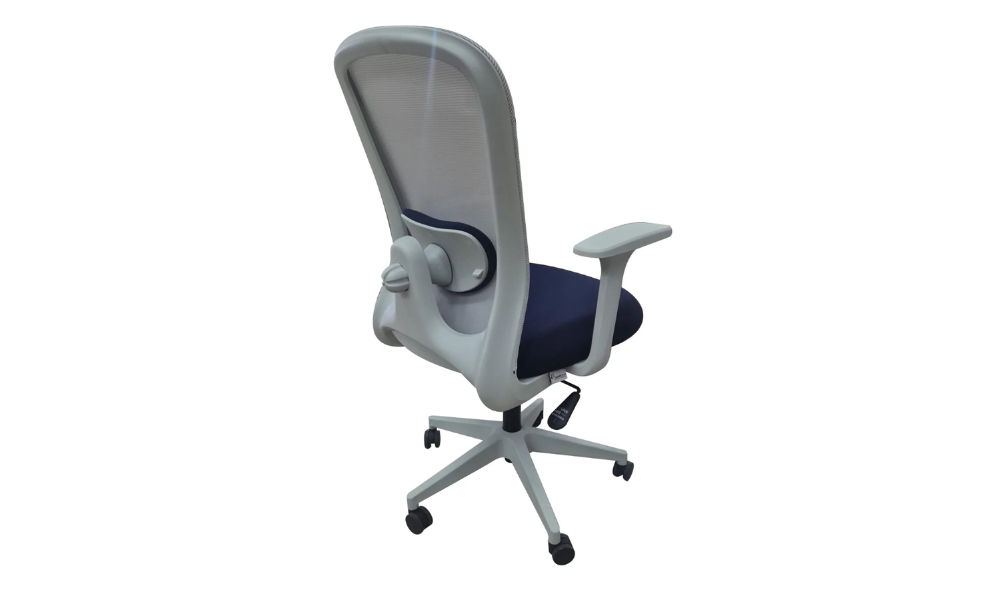 - Respaldo en malla de alta resistencia en color gris.