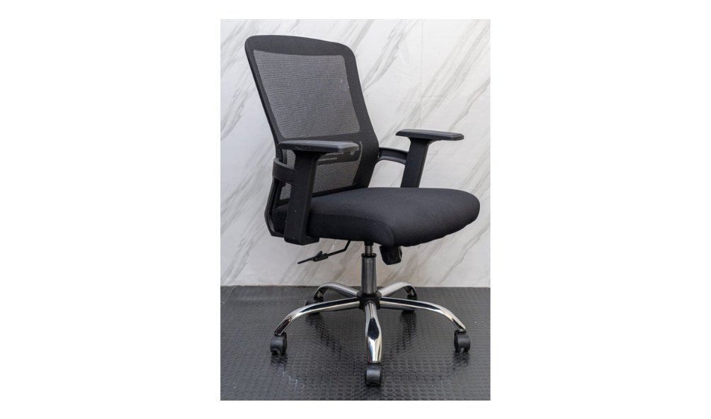 - Respaldo en malla y asiento en tela de alta resistencia en color negro.