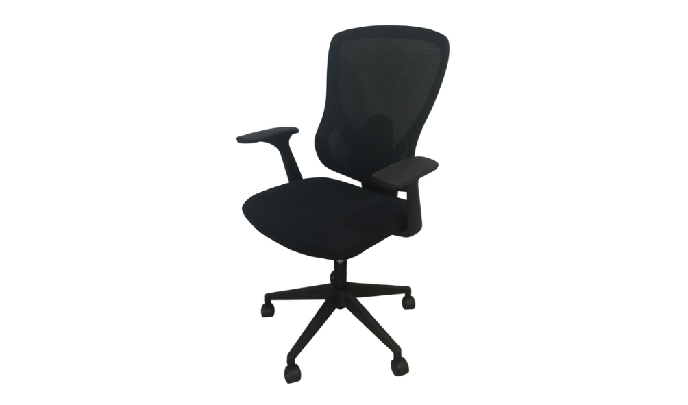 - Respaldo en malla y asiento en tela de alta resistencia en color negro.