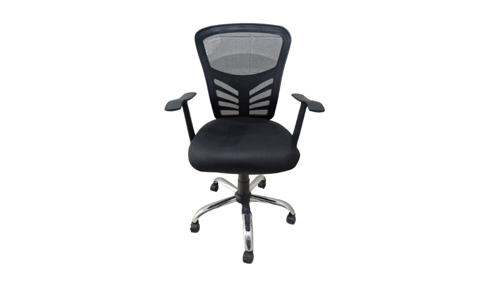 - Respaldo en malla y asiento en tela de alta resistencia en color negro.
