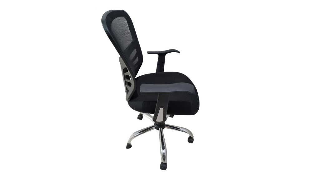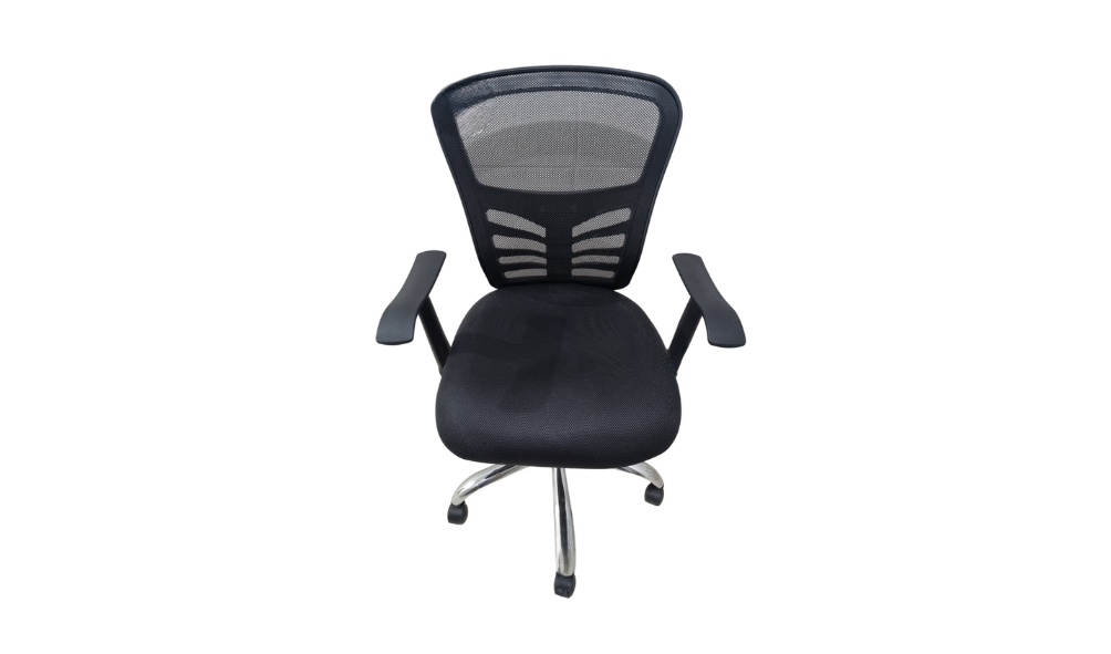 - Respaldo medio en malla y asiento en tela color negro.
