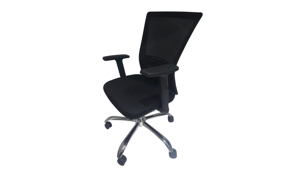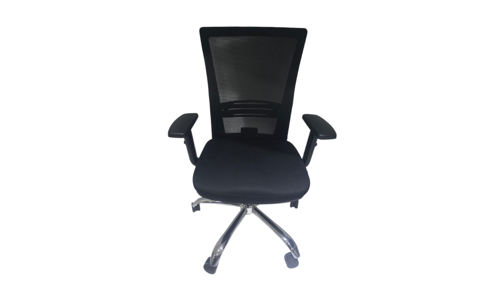 - Silla ergonómica con respaldo medio en malla y asiento en tela mallada color negro.